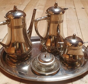 Kaffee Service Schönes Kaffee Service mit Zuckerdose / Honigtöpfchen 2 Krügen und 1 Tablett.